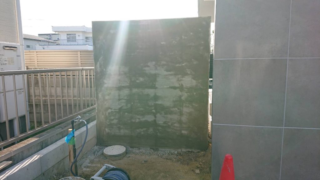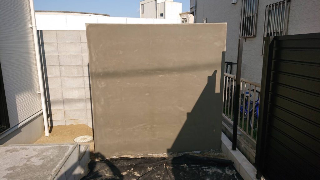 このモルタル仕上げは結構時間との勝負で、日が当たっているとすぐに乾いてしまうので、急いで塗らないといけません。
