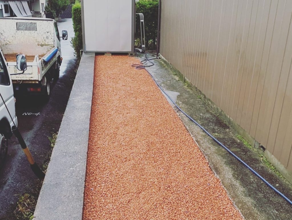 いつも使う黒系や白系の砂利と違い、今回は瓦チップを使用しました!