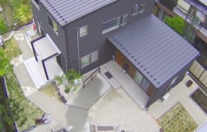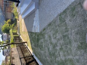アプローチを洗出しと乱張りで仕上げ、フェンスの設置を行いました。