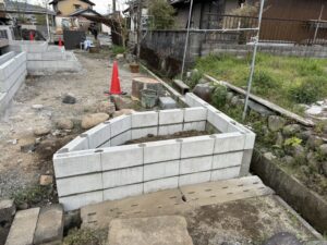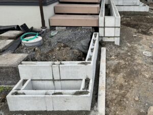 タイルデッキ基礎、花壇、階段の延長を行いました。