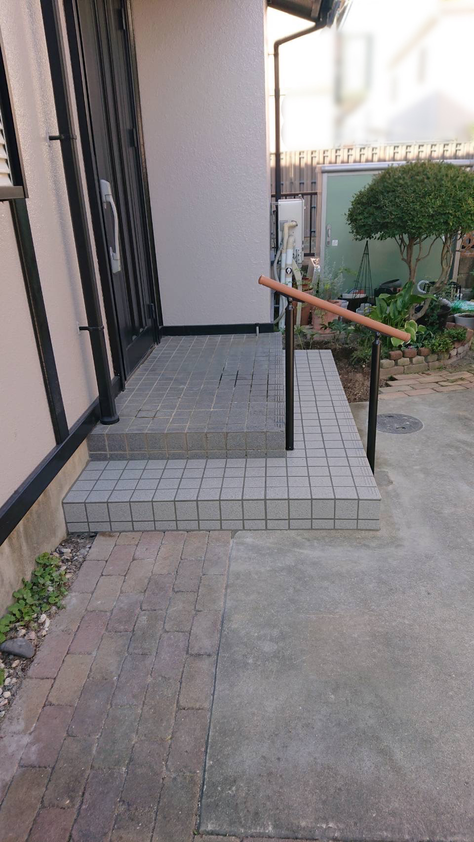 こんにちは本日は 玄関アプローチリフォームのご紹介ですこちらの玄関アプローチは動線が使い辛く段の高さと差があり躓いてしまう危れがあったので1段目の周囲を作り直しましたさらに安全に段を上り降りできるよう